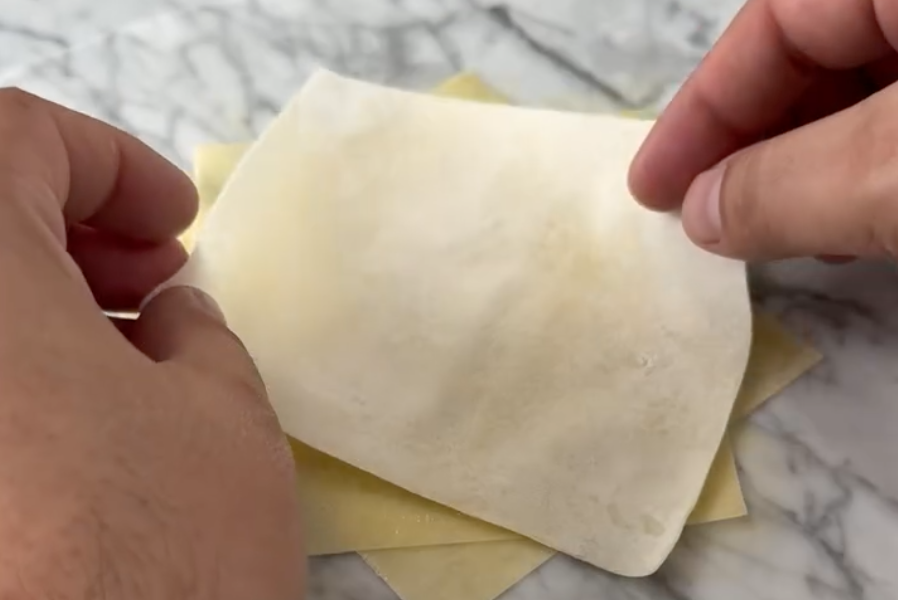 Start by preheating your oven to 180°C. Do not skip preheating. If the oven is not ready, the wrappers will not cook evenly.