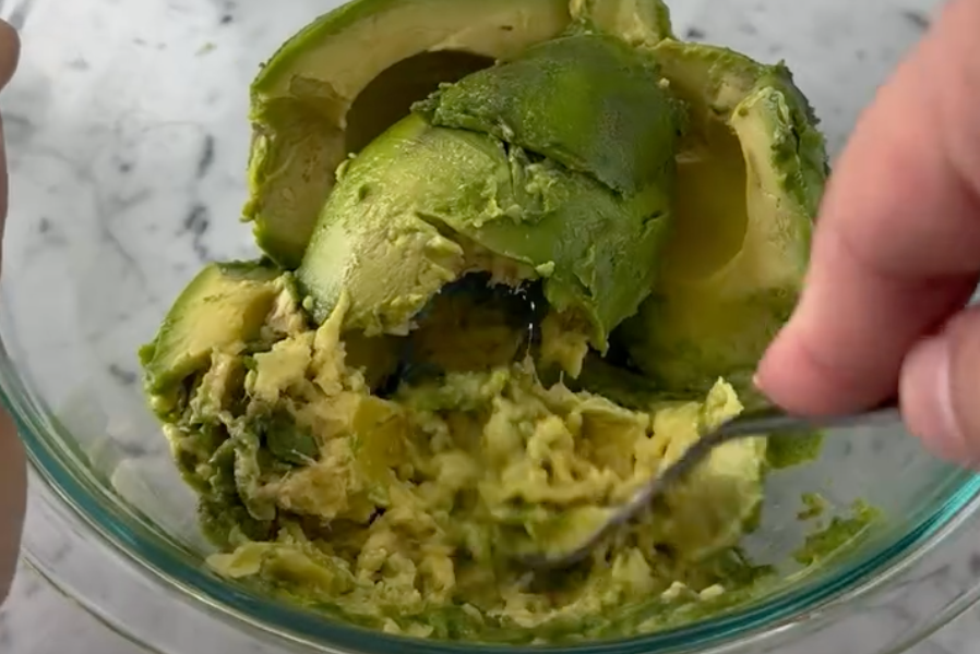 - Mash avocado in a bowl, keeping it slightly chunky. Add cream cheese and mix gently.