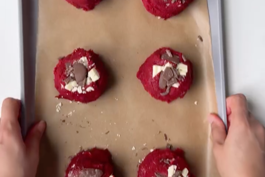 • Scoop dough into equal portions and place on a lined baking tray, leaving space between each.