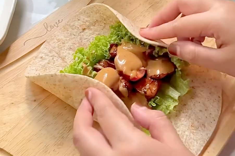 Do not overload the wrap. Too much filling will make it difficult to roll and it will break while eating.