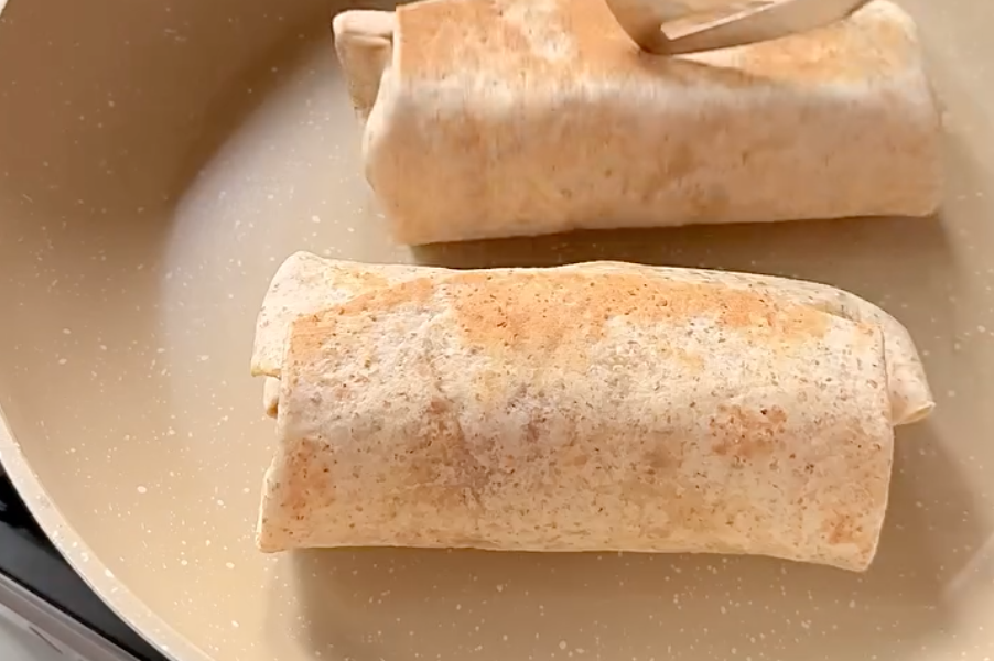 This step gives the wrap structure and a slight crisp outside, which improves the overall texture.