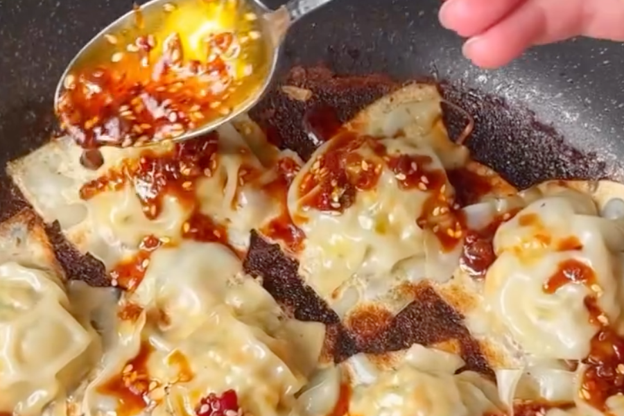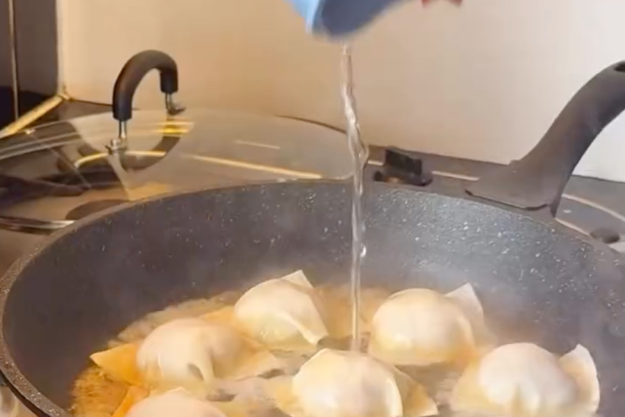 - Let dumplings cook untouched until bottom turns golden and crispy.